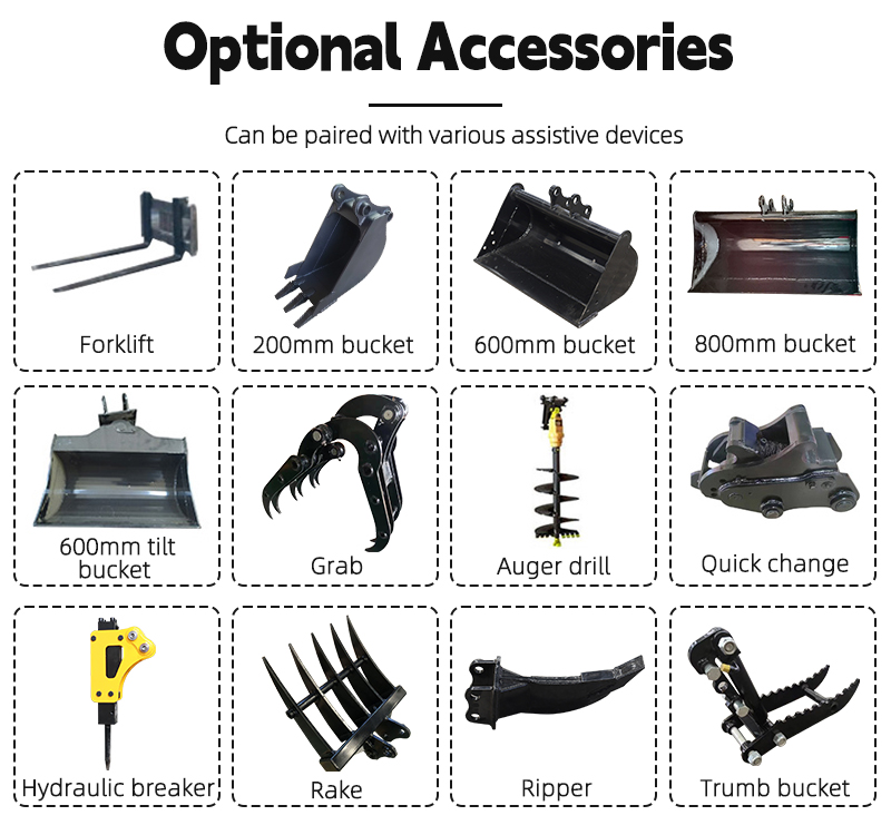 5. The micro-excavator bucket hose is well protected in the boom, and the cylinder is installed on the top. Long service life.