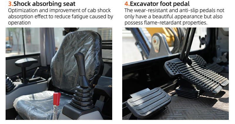3. The large arm side swing is the first in China, with a round tail design that conforms to foreign aesthetic views. The base of the upper arm and the front fork of the upper arm are both molded and cast as a whole. The large display screen in the cab and the armrest box are molded as a whole (high-end, atmospheric, and high-end).